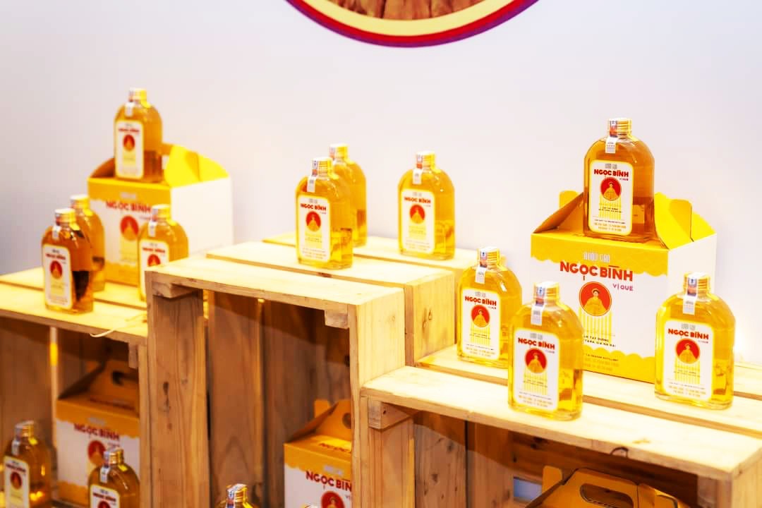 Rượu được đựng trong những bình Con Gái Rượu bằng gốm Bình Dương men xanh ngọc, biểu tượng của vẻ đẹp thanh cao. Dung tích 25L – con số của sự trưởng thành, của khoảnh khắc con gái rời vòng tay cha mẹ để xây dựng tổ ấm riêng. Trước thời khắc ấy, rót một chung rượu từ chiếc bình tinh tế, lòng cha có lẽ trăm ngàn điều muốn nói.
